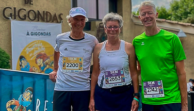 Im dritten Versuch soll heute endlich dieser Traum wahr werden. Vor 4 Jahren schon angemeldet, habe ich vor der Hitze zurückgezogen, im letzten Jahr wieder, da war der Meniskus dagegen. 18 Mal war ich mit dem Rennrad oben, doch ich will diesen Legenden-Berg nun auch laufend erleben. Das Zeitlimit liegt bei 3:40 Stunden. Sicher bin ich nicht, ob ich das im fortgeschrittenen Rentenalter schaffen kann. Die ersten 6 km steigen nur mäßig an, hier gelingt mir noch ein Schnitt von unter 7 min/km. Ein Polster, das ich noch brauchen werde. Dann kommt die berühmte Kurve von St. Estève, und das Rennen ist im Prinzip für mich vorbei. Denn ab hier wird es zum Wandertag. Mein Plan ist, unter 10 min/km zu bleiben. Das klappt, wenn auch nur knapp. Ich hatte gehofft, hier noch ab und zu in den Laufschritt verfallen zu können. Diese Versuche breche ich jeweils schnell ab. Jedenfalls geht der Traum erfolgreich zu Ende. Mit dem Ergebnis wäre ich vorher zufrieden gewesen, doch der Verlauf ernüchtert mich. Etwas mehr Lauftempo hätte ich mir schon gewünscht, die Realität sieht anders aus. Der Sieger war übrigens in 1:30 Std oben!