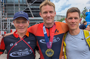 freuen uns, ihn im Trikot des PV Triathlon TG Witten bei einem