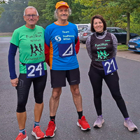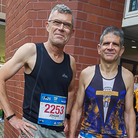km wird Andreas Bremer (PVTG, beide im Foto) 2. M65 in 29:30.