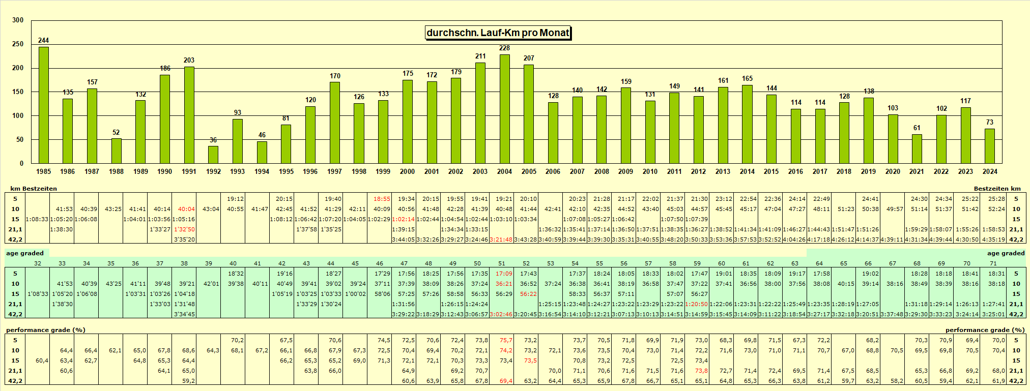 Rückblick 2024: Das sportliche Jahr begann viel-versprechend und endete enttäuschend. Pokalerfolge in Bertlich, Hamm und Westerland erzeugten im ersten Vierteljahr pfauenhaften Stolz. Auch der 25. London-Marathon war ordentlich und ließ schon wegen des Jubiläums Freudentränen kullern. Weitere Träume gingen nicht in Erfüllung. Der Meniskus legte ein Veto ein. Wieder kein Lauf auf den Ventoux, immer noch keine Fortsetzung der deutschen Grenz-erfahrung. Immerhin waren über 4.000 Radkilometer möglich, wenn auch auf selbst für Senioren niedrigem Niveau ohne viele Höhenmeter. Was im neuen Jahr wird, steht in den Sternen bzw. im Knie, dem die OP offenbar nicht abschließend geholfen hat. Alle Ziele wackeln. Reisen werden nur noch mit Rücktrittsversicherung gebucht, Startnummern genau so. Die meisten Konkurrenten von früher sind längst nicht mehr dabei. Auch für mich rückt das Karriereende näher, vielleicht war es auch schon da. Doch das Motto heißt: Aufgeben ist keine Option. |