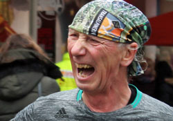 kommen. Eben noch habe ich einen kollabierten Läufer am Rande liegen sehen.