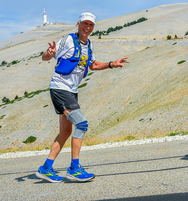 Im dritten Versuch soll heute endlich dieser Traum wahr werden. Vor 4 Jahren schon angemeldet, habe ich vor der Hitze zurückgezogen, im letzten Jahr wieder, da war der Meniskus dagegen. 18 Mal war ich mit dem Rennrad oben, doch ich will diesen Legenden-Berg nun auch laufend erleben. Das Zeitlimit liegt bei 3:40 Stunden. Sicher bin ich nicht, ob ich das im fortgeschrittenen Rentenalter schaffen kann. Die ersten 6 km steigen nur mäßig an, hier gelingt mir noch ein Schnitt von unter 7 min/km. Ein Polster, das ich noch brauchen werde. Dann kommt die berühmte Kurve von St. Estève, und das Rennen ist im Prinzip für mich vorbei. Denn ab hier wird es zum Wandertag. Mein Plan ist, unter 10 min/km zu bleiben. Das klappt, wenn auch nur knapp. Ich hatte gehofft, hier noch ab und zu in den Laufschritt verfallen zu können. Diese Versuche breche ich jeweils schnell ab. Jedenfalls geht der Traum erfolgreich zu Ende. Mit dem Ergebnis wäre ich vorher zufrieden gewesen, doch der Verlauf ernüchtert mich. Etwas mehr Lauftempo hätte ich mir schon gewünscht, die Realität sieht anders aus. Der Sieger war übrigens in 1:30 Std oben!