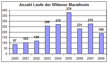 eines Marathons. Das sind deutlich weniger als im Rekordjahr 2005
