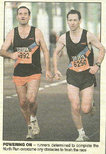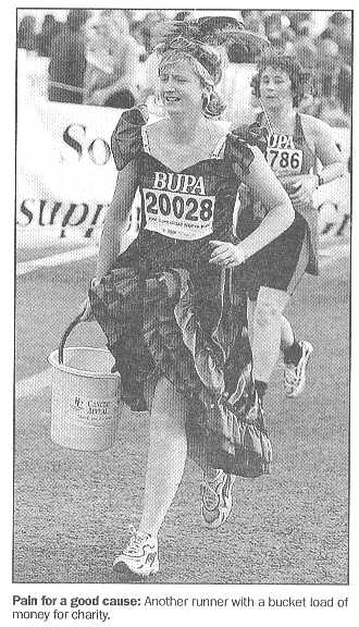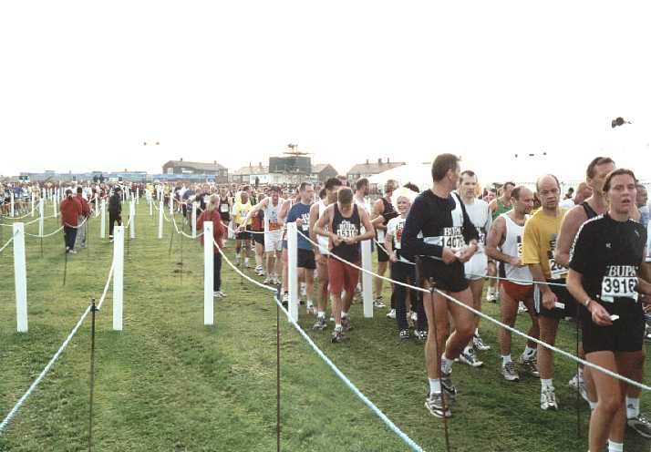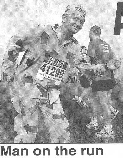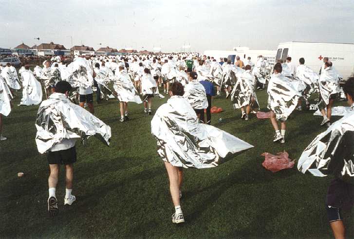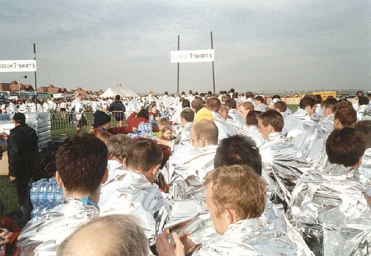 Die Profis laufen hier aber auch. Wie in London werden die Elite-Frauen ein paar Minuten vor dem großen Feld gestartet. Die Engländer waren schlichtweg aus dem Häuschen, denn Paula Radcliffe lief bei Meile 6 der Marathon-Weltrekordlerin Tegla Loroupe auf und davon. Sie nahm ihr sagenhafte 3 Minuten ab und siegte mit Europarekordzeit von 1:07:07. Bei den Männern siegte Faustin Baha aus Tanzania in 1:01:57. Von den großen Namen im Feld, Pinto (16.), Fiz (8.), Garcia (10.), Lopes (7.) und Modica (4.) war nicht mehr die Rede. Ein englischer nobody war schneller als all diese, Andy Coleman wurde zweiter (1:02:28) noch vor dem Kenianer Mutai. |