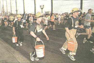 Auch ich habe mir keine Rekordzeit vorgenommen und laufe erstmals mit Fotoapparat. Aber ein paar Minuten unter 1:40 sollten es eigentlich schon werden. Es kam dann anders. Ich hatte mich kurz hinter 1:20 ins Startfeld gedrängt und kam mir damit nicht ganz fair vor. 2,5 min nach dem Startschuss war ich auch an der Linie. Doch es dauerte bis Meile 5 (!), bis ich zum ersten Mal den beabsichtigten Schnitt von 7:15 pro Meile laufen konnte. Meile 7 und 8 war ich dann zu schnell. Zu allem Pech wurden bei Meile 9 die Oberschenkel hart - wie es bisher nur bei km 30 im Marathon erlebt hatte (wohl eine Folge der noch nicht auskurierten Erkältung und der Zwangspause), der Rest war dann kein Genuß mehr. Aber mit brutto 1:41 komme ich als 3646. noch knapp unter die ersten 10% aller Finisher. |