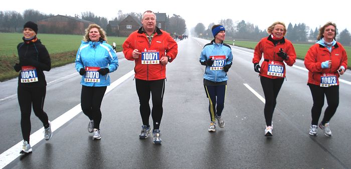 Kein Problem mit der Strecke hatte vor allem Laura Routaboul de Brüchert-Pastor. Die etablierte PV-Läuferin lief als schnellste Wittenerin nach 1:08:43 Std. über die Zielline - und schrammte mit Platz vier der Altersgruppe W30 an den Treppchenplätzen vorbei. Anne Heibing folgte als zweitschnellste Wittenerin in 1:14:51 Std. und holte sich damit den dritten Platz in ihrer Altersgruppe W55. Frank Kurpiers war schnellster PVler auf dem Weg von Werl nach Soest. Bruno Brahmann teilte das 'Schicksal' von Laura Brüchert-Pastor und verpaßte mit dem 4. Platz in der M70 und einer Zeit von 1:20:30 Std. ebenfalls die Medaillenränge. Den besonders schnellen Läufer/innen folgten Thorsten Kerwel (1:09 Std.), Nils Brüchert-Pastor (1:10 Std.), Matthias Dix (1:14 Std.), Sabine Steinau und Dennis Rittershaus (beide 1:20 Std.), Thorsten Lohmann (1:21 Std.), Andrea Rittershaus und Eva Engelbrecht (1:24 Std.), Christiane Hellmonds (1:26 Std.), Kerstin Bertram-Schultz und Jürgen Grühn (1:29 Std.), Christiane Seubert (1:31 Std.), Andrea Hasselberg, Barbara Kleist und Dr. Gabriele Thiem-Müller (1:32 Std.), Brigitte Voß-Olschewski (1:33 Std.), Klaus Neumann und Rolf Steffen (1:34 Std.), Gerhard Schattanik und Ulla Bach (1:37 Std.), Pia und Thomas Rimpel (1:43 Std.) sowie Roland Hasselberg und Uwe Behrens (1:49 Std.).
