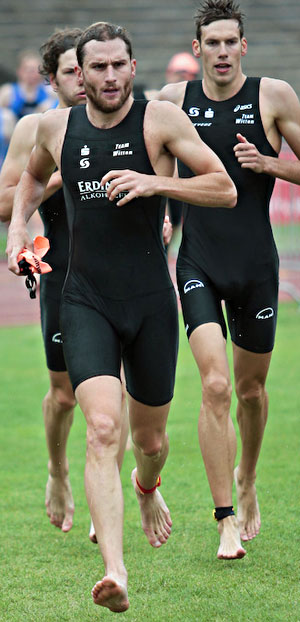 musste beim Schwimmen einige Tritte einstecken und eine 700m Laufstrecke