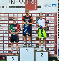 750m Schwimmen, 20 km Radfahren und 5km Laufen absolviert. Als erstes