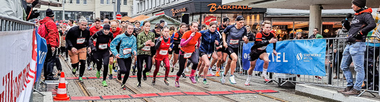 Wendepunktstrecke von 1,25 km in der Fußgängerzone. Beim 10km-Lauf