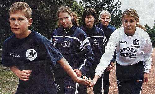 einer Laufbahn: Kevin, Anke, Christiane, Martin, Sina