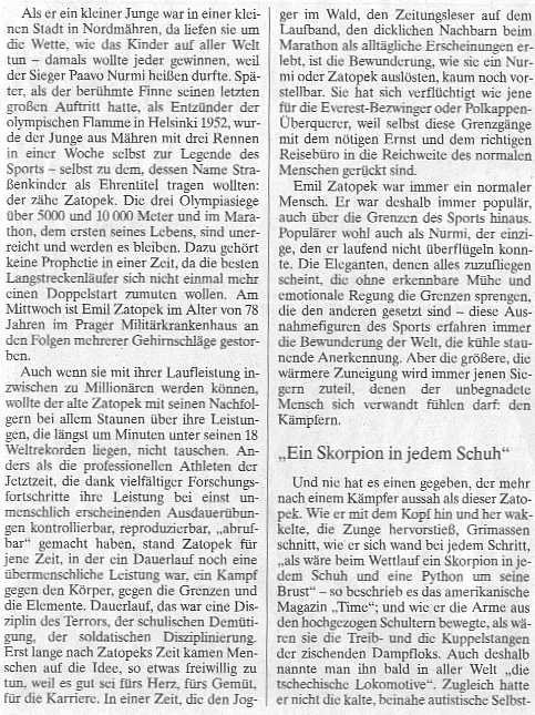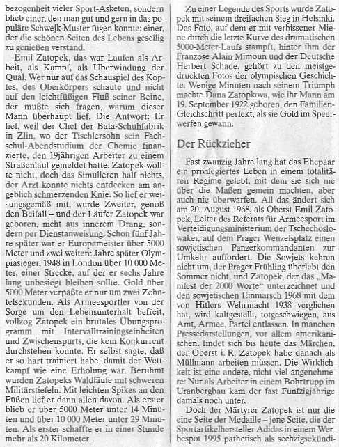 Zu ihnen gehörte Emil Zatopek (*19.09.1922, †21.11.2000)