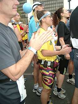 ging dann zum Start und machte ein paar Dehnübungen. Die Marathonhelfer
