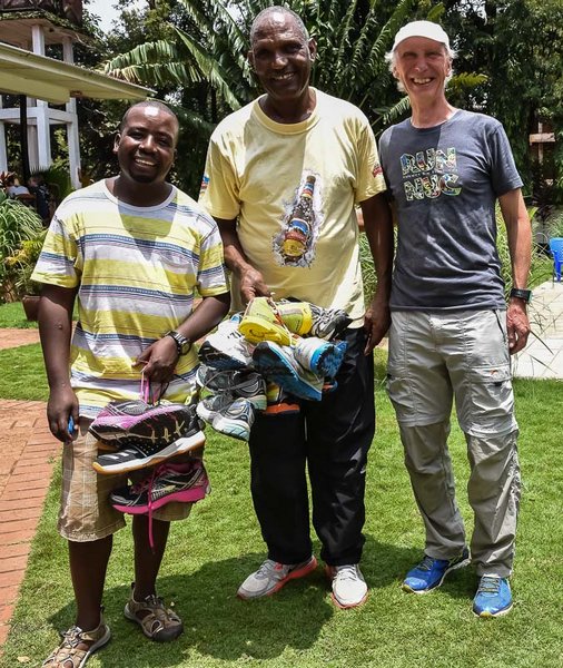 John Bayo (Bildmitte) ist ein ehemaliger Marathon-Profi. Heute ist er
