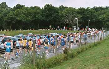 Es ist ein echter Insider-Lauf. Wir waren schon einige Tage zuvor auf der Insel angekommen, doch nirgendwo konnte ich Werbung für die Veranstaltung entdecken. Folgerichtig waren fast ausschließlich Vereinsläufer dabei, die meisten kamen busweise vom Festland angereist. Der Lauf gehört zu einer Serienwertung. Man sah fast ausschließlich Club-Trikots, vor und nach dem Lauf standen überall die Grüppchen von Vereinsmitgliedern zusammen. |