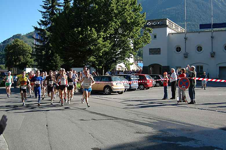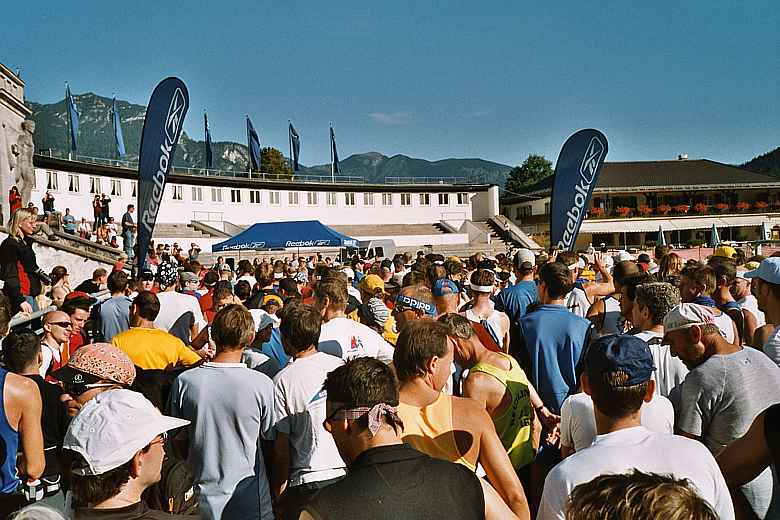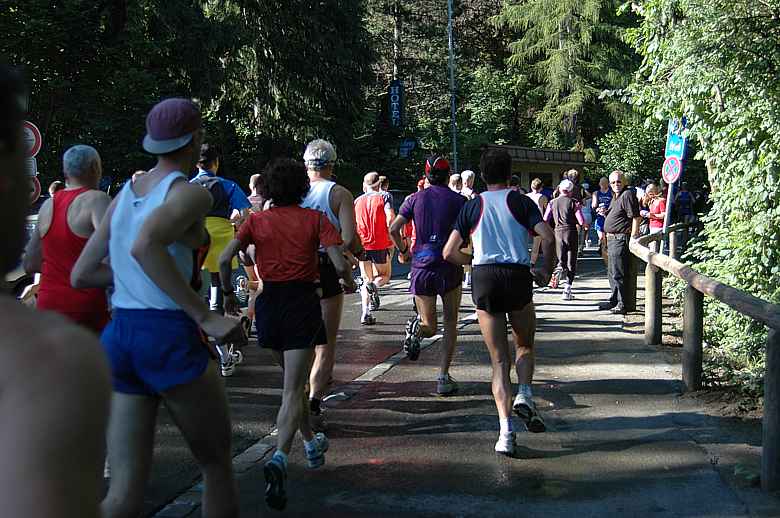 gehts: Das Olympiastadion wird durch das West-Tor verlassen. Der spätere Sieger, Martin Echtler, ist schon hier