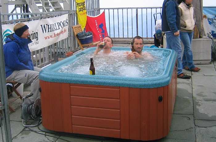 Nur Superlative auf der Zugspitze: Deutschlands höchste Badewanne bot Platz für vier. (Foto: Kubeczka)