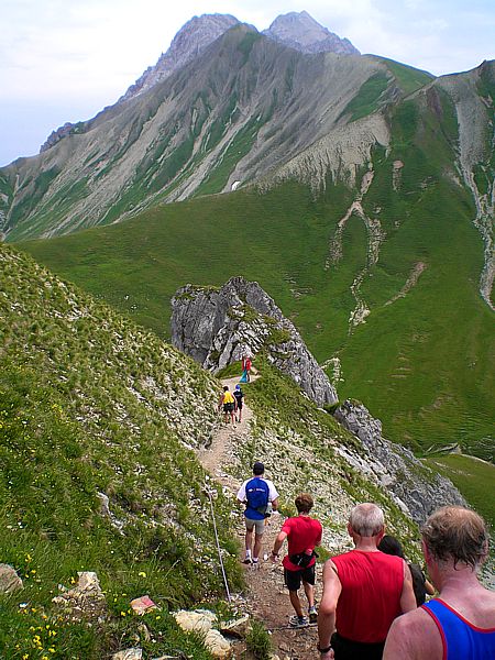 Den kurzen steilen Abstieg am Feldernjöchl hat die Bergwacht