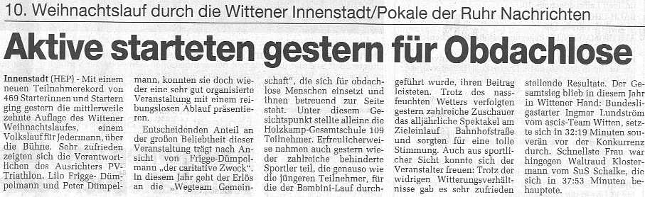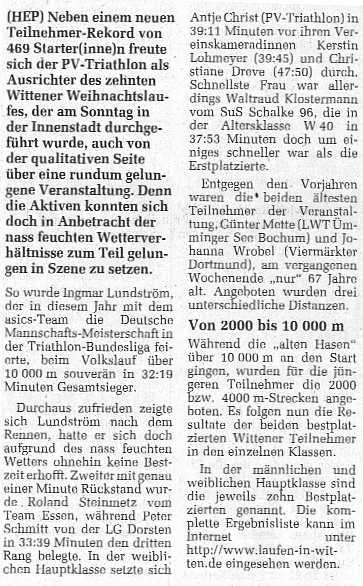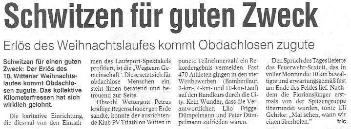 10. Wittener Weihnachtslauf am 10. Dezember 2000 veranstaltet vom PV Triathlon Witten e.V. |