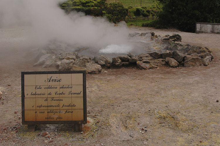 Schwefelig: Mitten im Ortszentrum von Furnas steigen unübersehbare Wasserdämpfe in den Himmel.