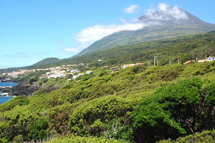 Eine Insel mit einem Berg: Blick von Sao Joao auf Monte Pico
