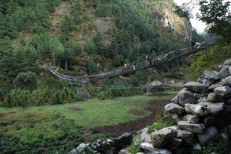 Several times one has to cross the river Dudh Koshi. The modern