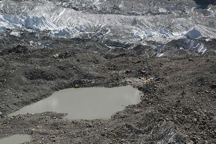 Cut out of the previous photo the tents of Pumori Base Camp can be