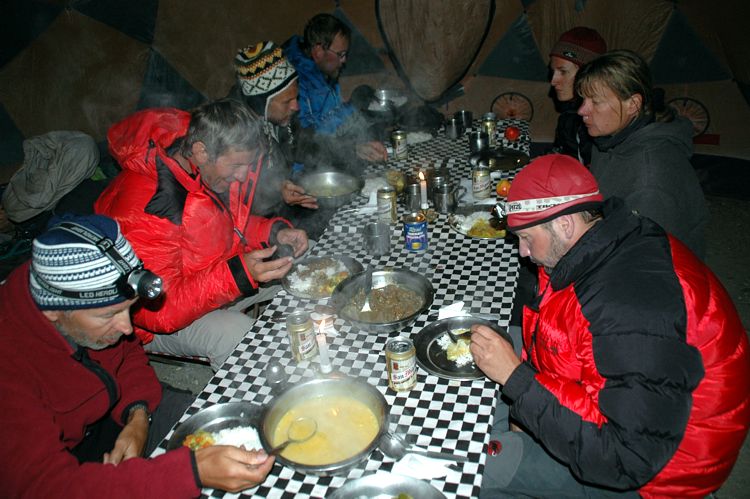 Beim Abendessen wirkt die Truppe etwas angeschlagen. Nachmittags