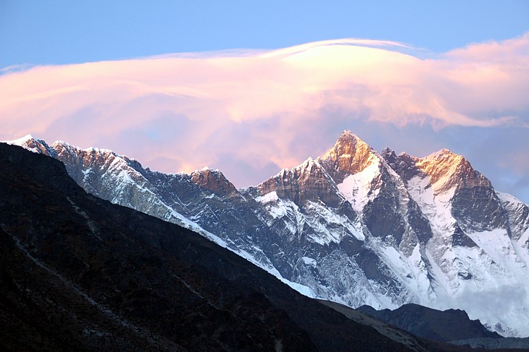Himmelsbilder: Am Nachmittag gehen wir weiter bis nach Dingboche und haben diesen abendlichen Blick auf den Nuptse. Red Sky At Night: In the afternoon we continue to Dingboche and this is our late view of Nutpse.