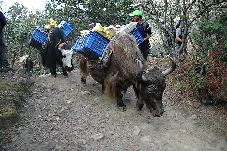Bepackt: Den nicht immer berechenbaren Yaks geht man grundsätzlich