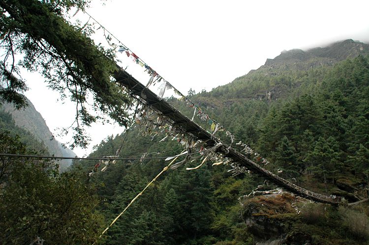 Hillary Bridge: Auch auf dem Rückweg ist die Überquerung ein Spaß, zumindest bei ruhigem Wetter. Hillary Bridge: On the way back it is again great fun to cross the airy bridge, as long as it is not windy.