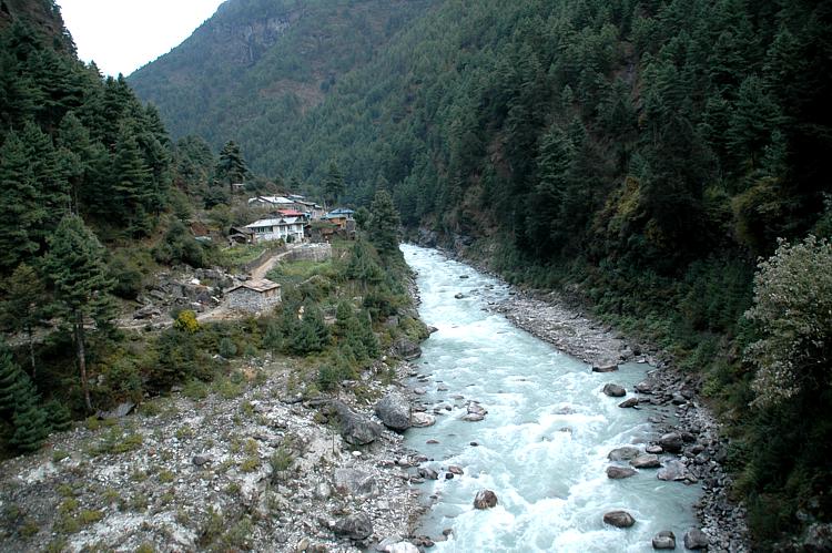 Geschafft: Eine lange Etappe - von Dewoche über Namche nach Monjo - geht zu Ende. Nearly Done: A very long stage - from Dewoche via Namche to Monjo - is finished.