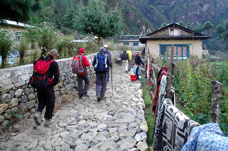 Trekking-Finale: Die neue Hauptstraße von Monjo ist der Startplatz für unsere letzte Etappe bis nach Lukla. The Finish: The new High Street of Monjo makes the start of our very last stage to Lukla.