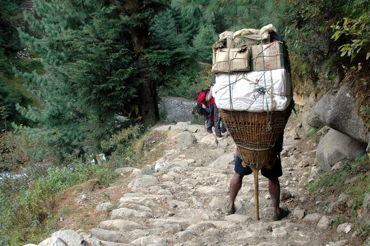 pausieren. Zum Abstützen des Gewichts sind geschnitzte Stöcke dabei.