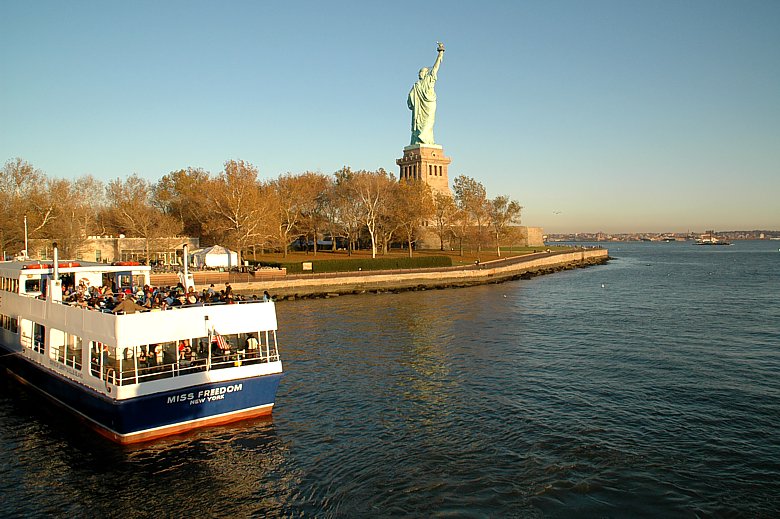 Bootsfahrt: Miss Freedom am Kai von Liberty Island