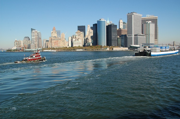 Blauer Süden: Blick von der Staten Island Fähre auf Süd-Manhattan