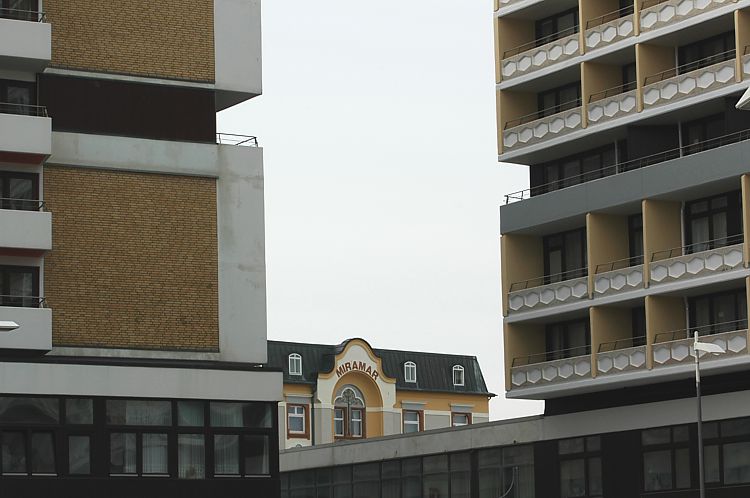 Trutz blanker Hans: Das Hotel Miramar trotzt seit über 100 Jahren der Brandung. Zur Landseite ist es wehrlos.