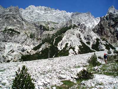 schon kurze Irrwege führen in steinschlaggefährdete Zonen. |