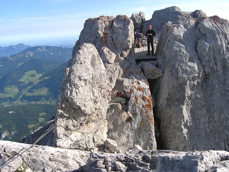Einstieg: An der Plattform des Hochecks beginnt der Klettersteig.
