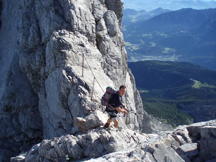 Nicht überall ist der Weg durch Drahtseile gesichert. In steilem