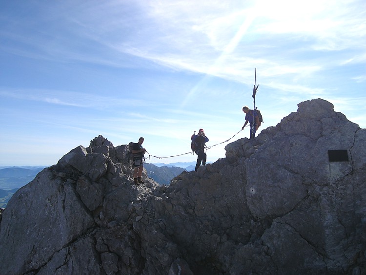 Dem Himmel nah: Die letzten Schritte gut gesichert zum Gipfel der Mittelspitze.