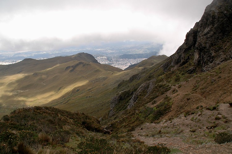 Tiefblick: Die Wolken lassen uns nur hin und wieder einen Blick auf das Häusermeer von Quito werfen.