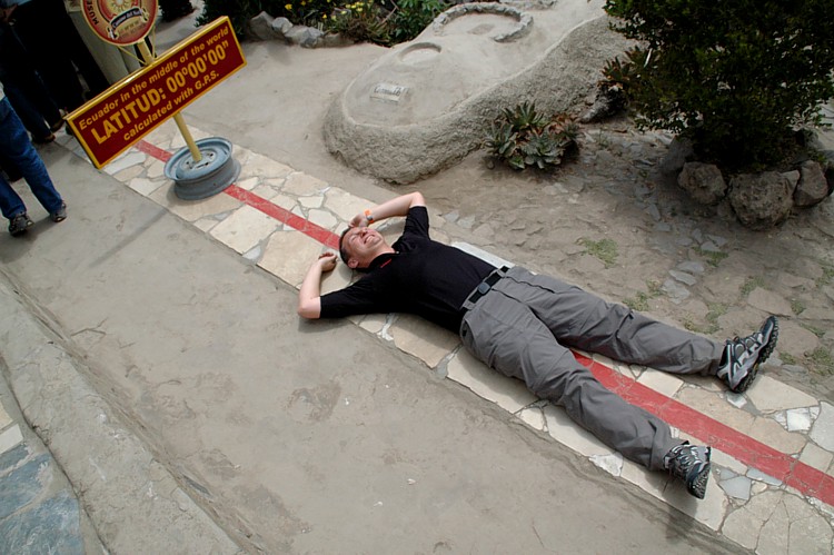 Hier ist die Mitte: Entspannung unter Aufteilung des Körpers auf die beiden Erd-Halbkugeln. Das Äquator-Museum ist unbedingt einen Besuch wert.