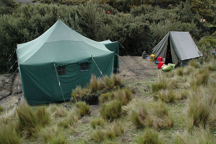 Catering: Rechts die Küche, links unser Esszimmer, das in der Nacht auch als Unterkunft für die Mannschaft dient.