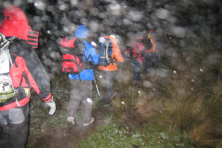 Unfreundlich: Um 4 Uhr in der Nacht machen wir uns bei Schneegestöber und eiskaltem Wind auf den Weg.
