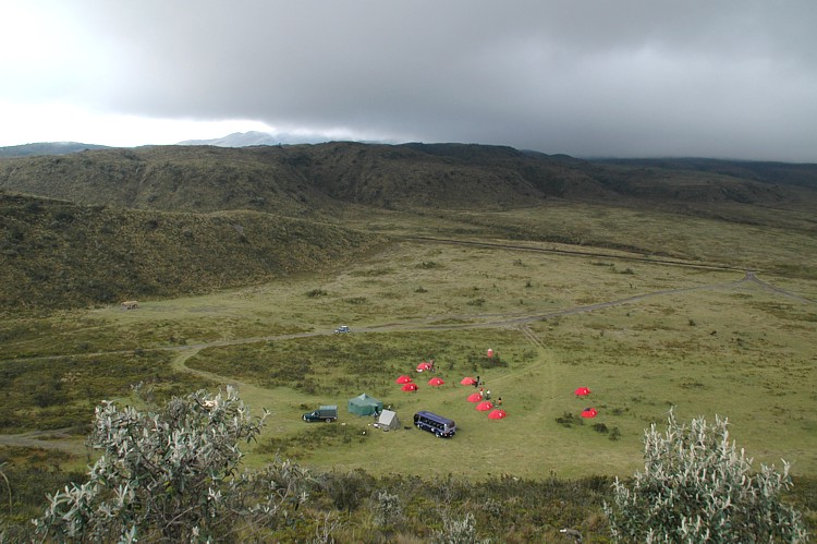 Basislager: Das schöne gelegene Camp befindet sich auf einer Höhe von 3.800m. Wenn es morgens und abends nur nicht so neblig wäre...