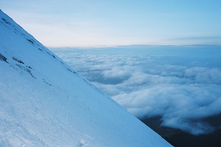 Stundenlang geht es auf dem steilen Gletscher weiter aufwärts.
