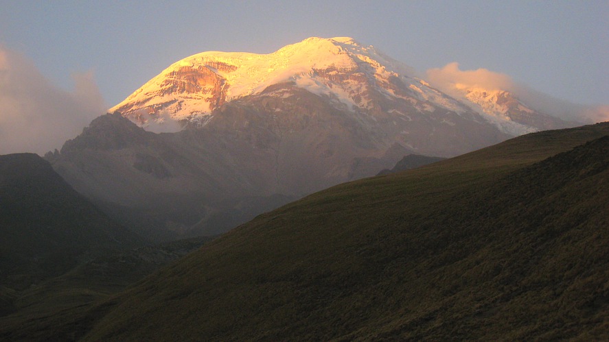 Zurück in der Lodge leuchet uns der Chimborazo entgegen.