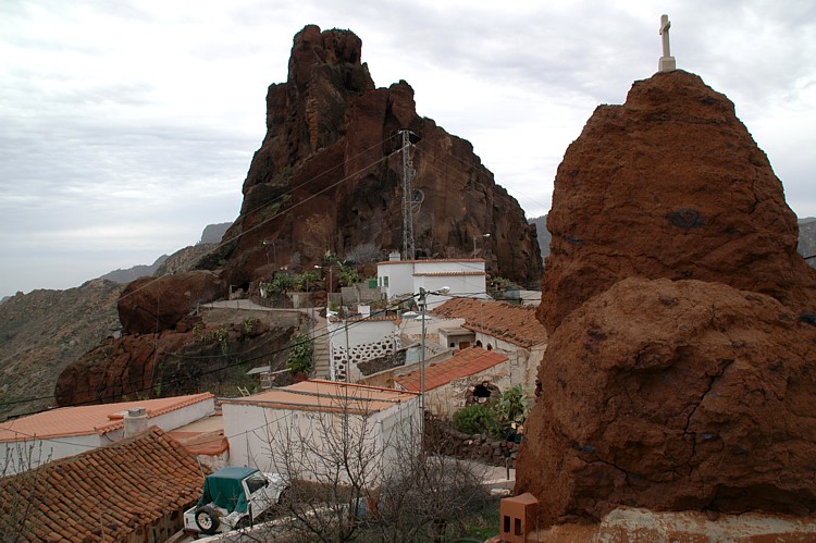 Gedrängt: Eng beisammen wohnen die wenigen Anwohner der Cueva del Rey, aber voll erschlossen mit allen Anschlüssen moderner Technik und einer makellosen Asphaltpiste. (Kompass-Wanderung Nr. 3)