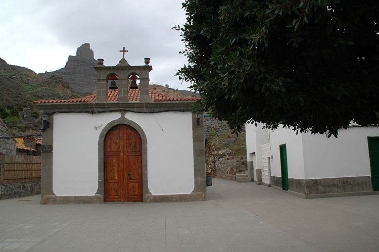 Vom Kirchplatz in La Solana geht der Blick hinauf zum Roque Bentayga,