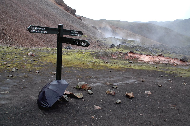 Der Start: Endlich gehts los! Mein Tchibo-Schirm hat den ersten Wandertag nicht überlebt! The Start: Now we are off! The discounter's umbrella did not survive the first day of walking!